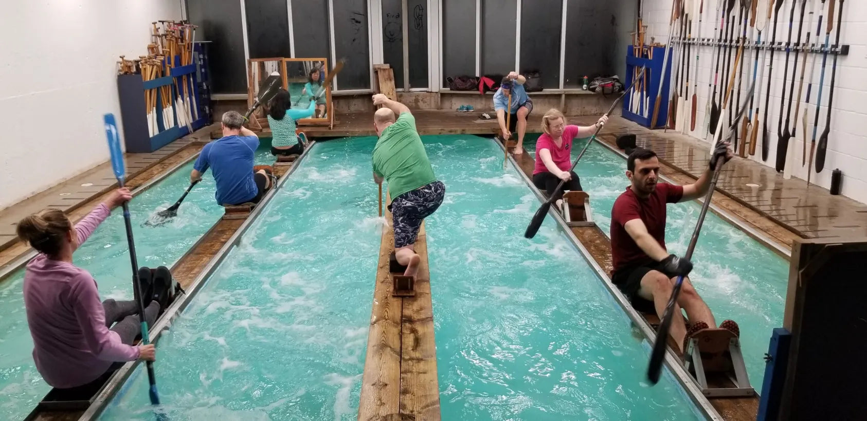 The program includes general strength and aerobic fitness work on and off the water in addition to on-water sprint canoe/kayak technical training.
